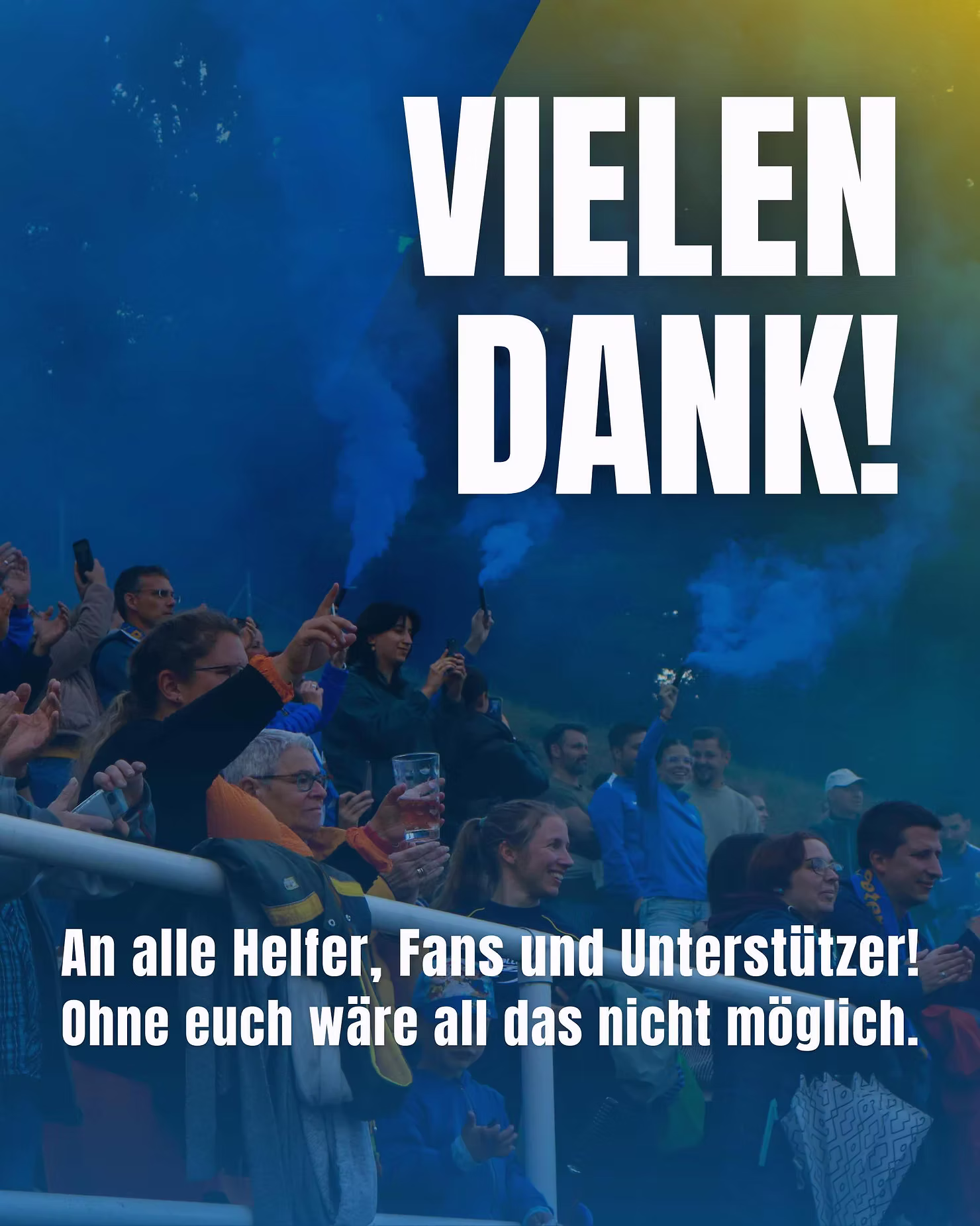 Ein herzliches Dankeschön geht auch an unsere treuen Fans: Ihr seid bei jedem Wetter da, jubelt mit, fiebert mit – und gebt uns Rückhalt, auch wenn es mal nicht rund läuft. Eure Leidenschaft auf den Rängen und darüber hinaus macht unseren Verein lebendig und einzigartig.