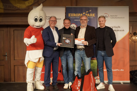 Im Rahmen der Veranstaltung erhielten wir von Thomas Rößler (Vizepräsident des bfv) und von Gastgeber Philipp Hensle (Europa-Park, Leiter Kooperationen, Marketing, Sales & Digital) die Auszeichnung in Gold.